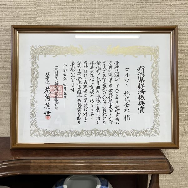 この度マルソーは、「第41回 新潟県 経済振興賞」を受賞いたしました👏